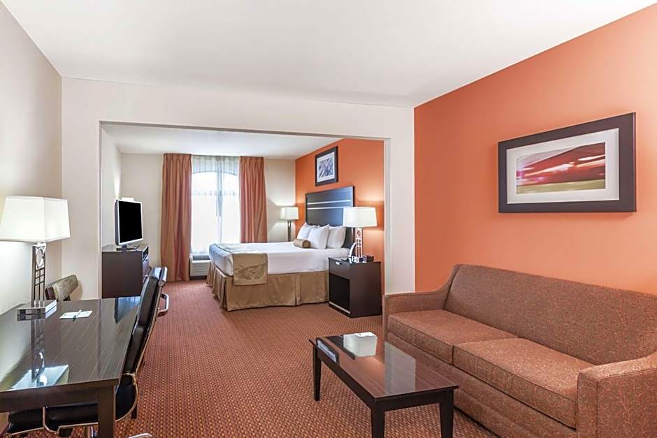 1 King Bed Jetted Tub Non-Smoking is 301 square feet and includes a king-size bed 150-183 width plus living room and satellite tv .